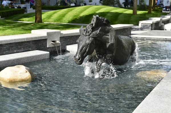 To set the horses in Goodman’s Fields, Berkeley commissioned some of the leading technical and landscaping engineers in the UK. John Murdoch of Murdoch Wickham Landscape Architects, has designed a landscape that matches the horses in beauty and ambition: mature trees, pools and fountains follow the curved path of their charge through the piazza.