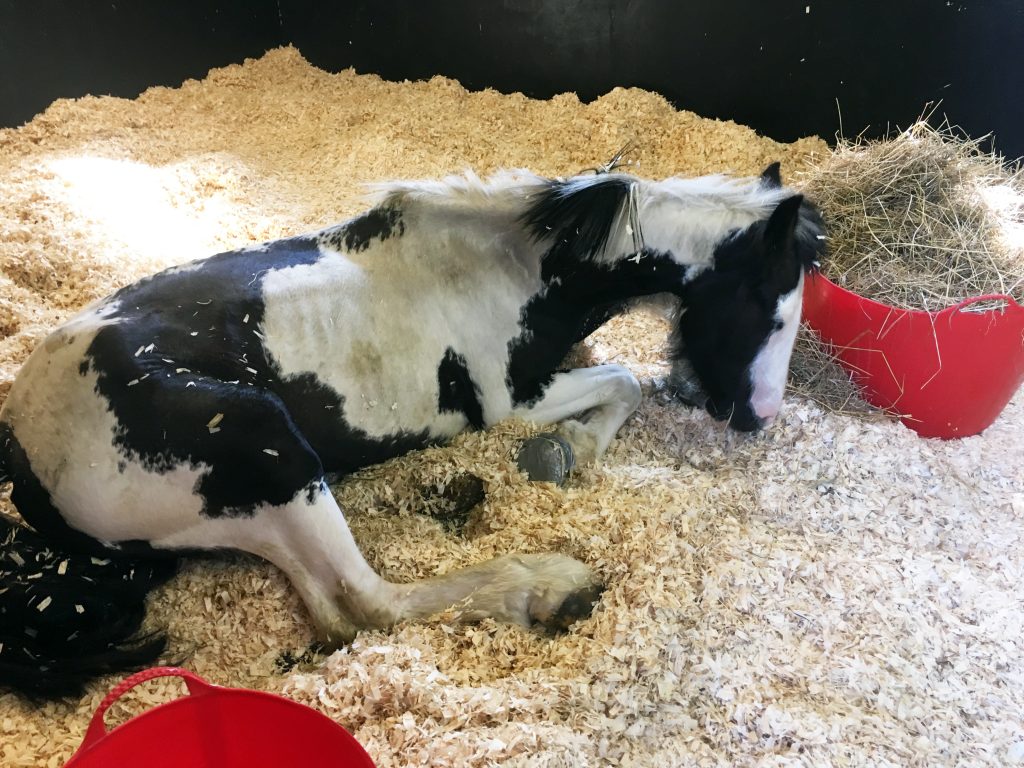 Raggy, who was believed to be four years old, was found very underweight and was in such pain from severe laminitis – a condition affecting a horse’s feet – that she was rooted to the spot. Upsettingly, Raggy also had an udder full of milk indicating she may have recently lost her foal or had her foal removed from her.