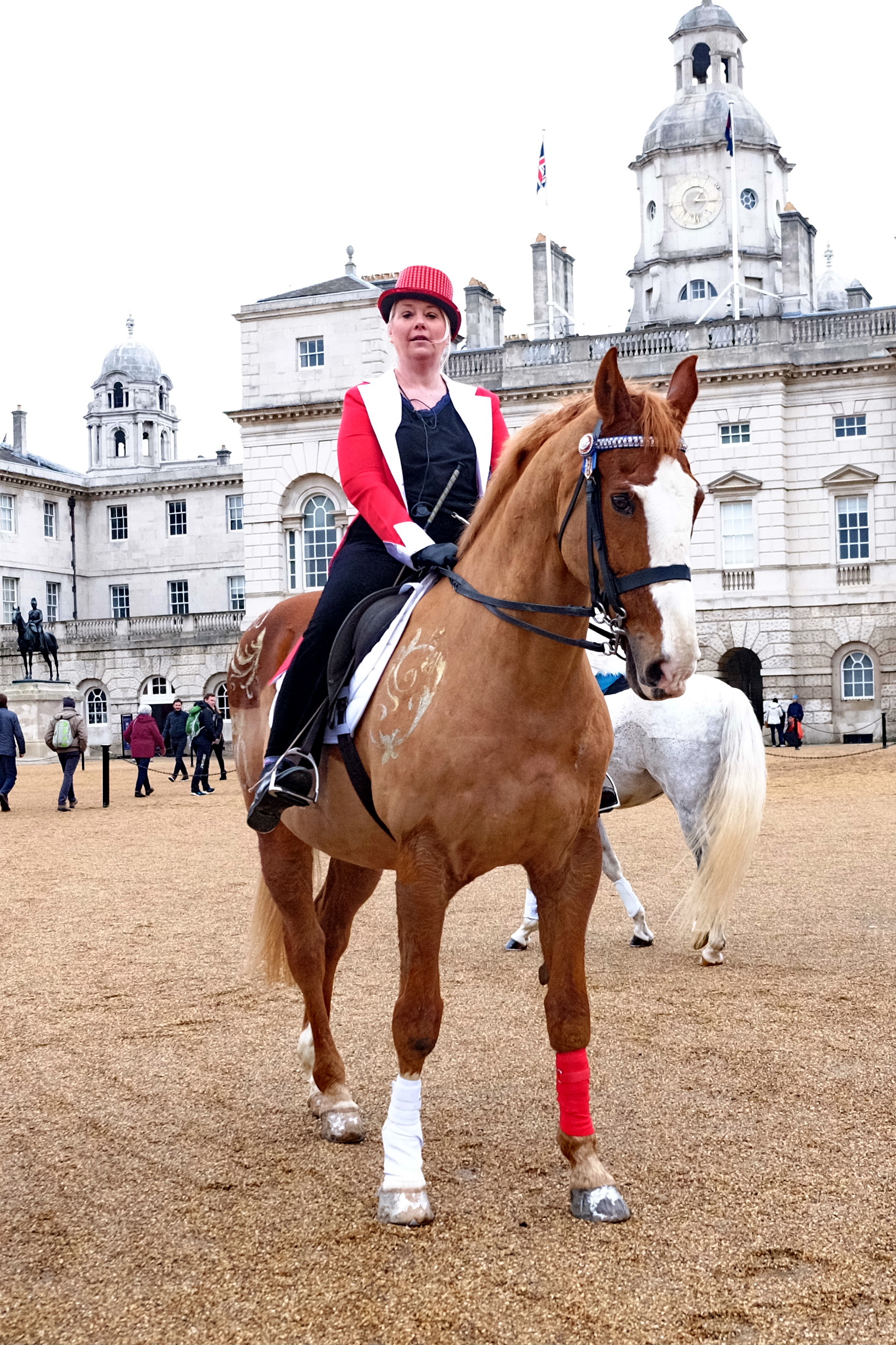 It’s always buzzing with general public looking fascinated by the horses as we start to get ready. However, we have to be strict on security despite lots of tourists desperate to come and stroke the horses! Once our costumes are on, and the horses are groomed to perfection and in many cases, also dressed! We have to crack on depending where we are placed in the parade. Generally, we are in with the first 25 cheerleaders bands section. It’s enjoyable and takes around 45mins to get through the parade to finish at Parliament Square. The parade finishes there, and we go back to the horseboxes, via the Horse Guards and ride down the mall towards Buckingham Palace for lots of fabulous photos with the photographers on the route as well.