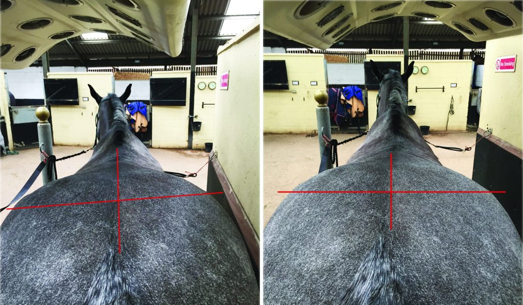 Simply standing your horse up square on a level surface and (carefully) standing behind him to look at the muscle development of the hindquarters can be an interesting exercise and tell you a lot.