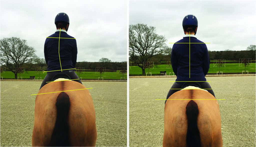 “As one pelvis gets worse, so does the other. It is difficult to say whether the horse can give the rider an asymmetric pelvis or vice versa, but the likelihood is that if one half of the horse/rider partnership isn’t straight then there is a high probability of the other half not being straight either.”