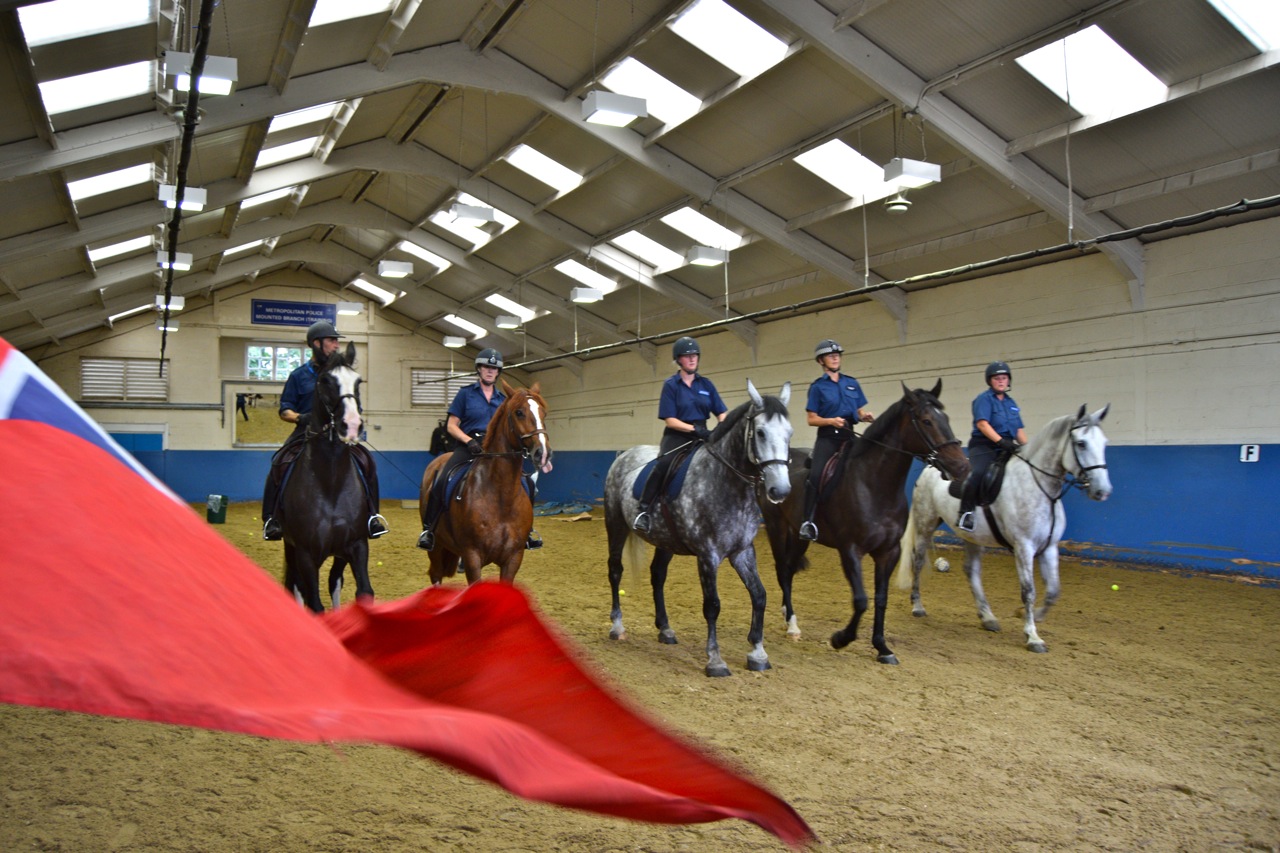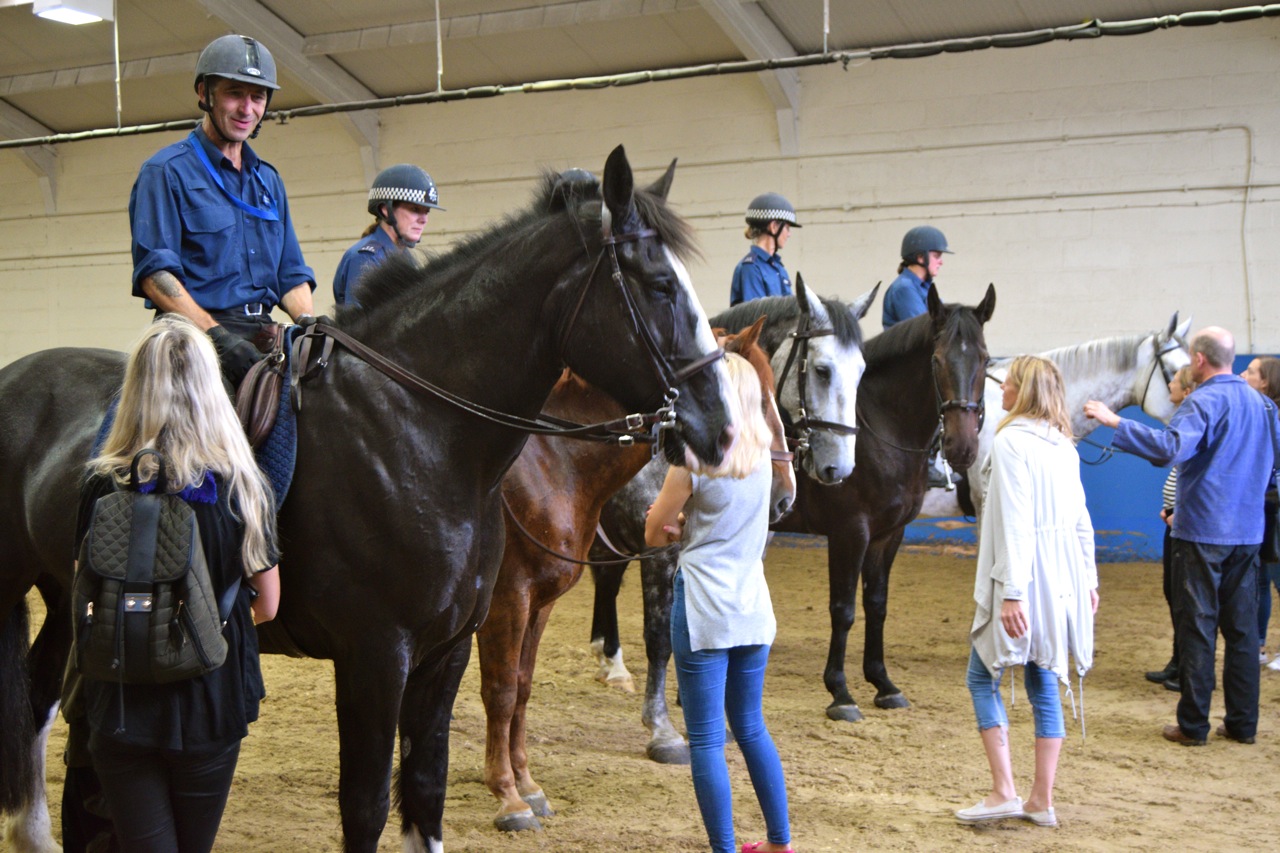 The yard which can stable 51 horses, has an indoor school, horse walker, own farriery team and vets as well as a number of marked police horse lorries.