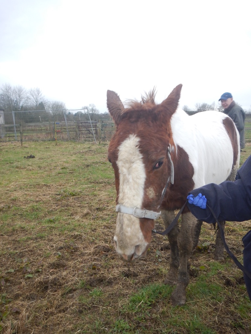 Denny has now been wormed, has had his feet trimmed and the sores on his legs that were caused by the mud have been treated. A special diet has been formulated to provide him with balanced nutrition and this should help him to gain weight safely.