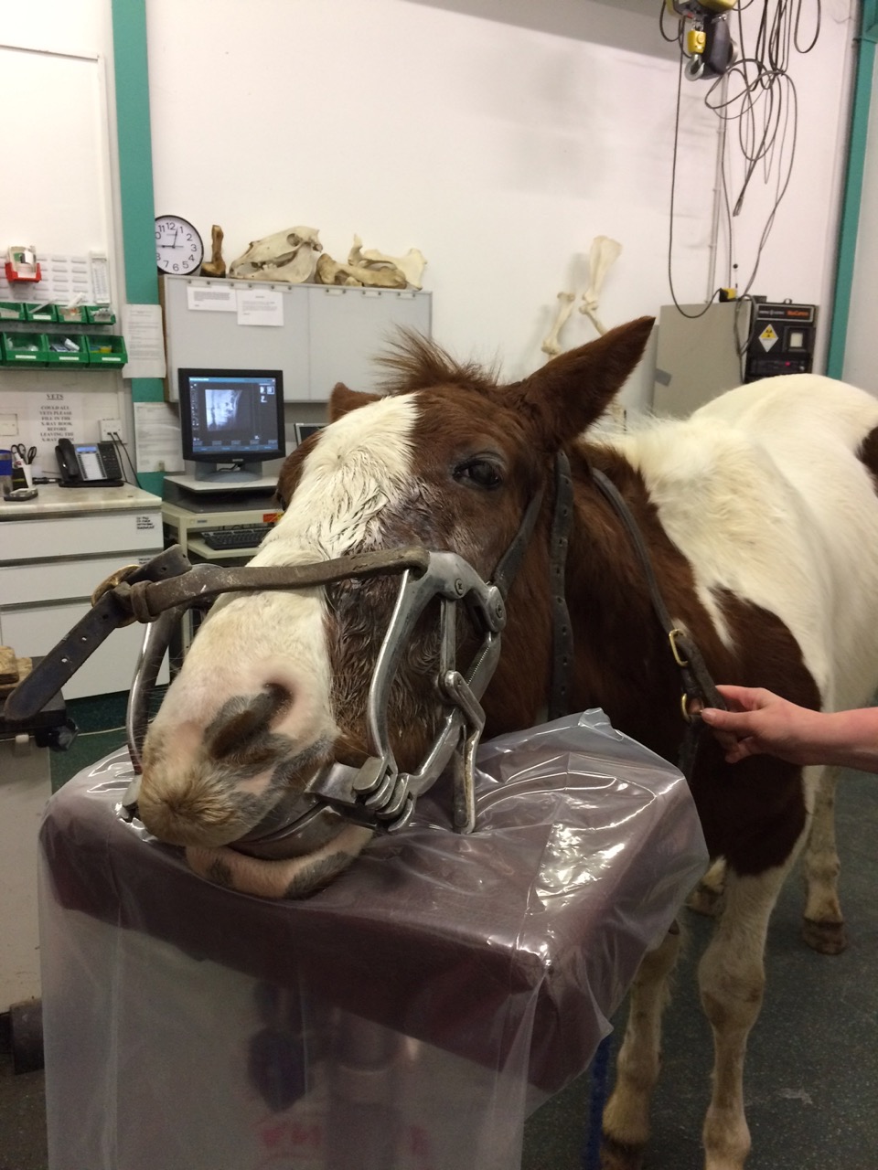 ‘Denny had a large swelling and a draining tract due to an abnormally swollen cheek tooth which had associated problems. As a first step towards resolving this he had surgery to remove the abnormal tooth.”