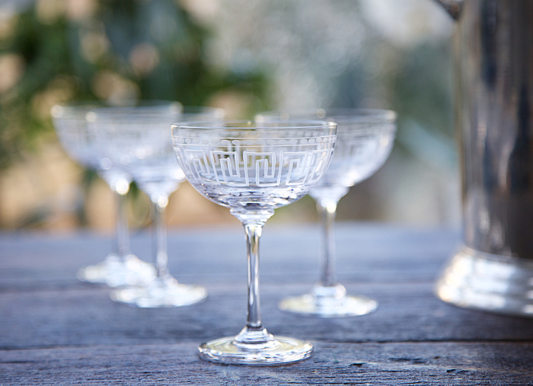 Enjoy your summer bubbly with this elegant set of 6 handblown and engraved crystal Champagne Saucers from The Vintage List. As dainty as they look they are dishwasher safe. £68 available online.