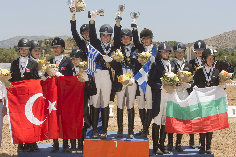 An average score of 63.367 secured the Senior Team title for the host nation also, with the 65.105 posted by Christina Sachinoglou and Rafaello 4 topping the leaderboard. Team-mates Evangelia Koupenou (Huligan), Stelios Stavroulakis (Baiao) and Antonio Tsamandoura (Hope for the Future) rounded up the solid Greek result which left them with a significant three-point advantage over Bulgarian silver medallists Raiko Ganukov (Ambrozia), Veselina Sokolova (Haga) and Boriana Kroumova (Riverdance) while bronze went to Turkey’s Sarkis Mura Saricoban (Santos), Melda Alaluf (Clockwork) and Ebru Adas (Pluto 79). There was very little between the Bulgarian and Turkish sides who performed extremely well considering they were fielding only three riders as opposed to the four on the winning Greek team.