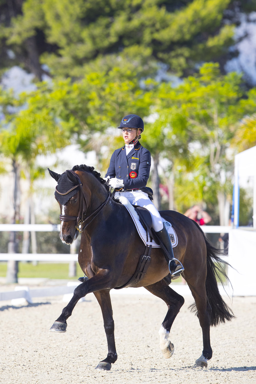 Rothenberger had to settle for silver in both the Individual and Freestyle Championships however when Hannah Erbe reclaimed the Junior Individual title she took in 2015 before also going on to add Freestyle gold. Rothenberger’s lovely young mare didn’t sparkle quite as much as she had done in the Team event, finishing only fractionally behind Erbe’s Carlos in the battle for the Individual title while The Netherlands’ Lisanne Zoutendijk (Kostendrukkers Ringo Star) took the bronze here.
