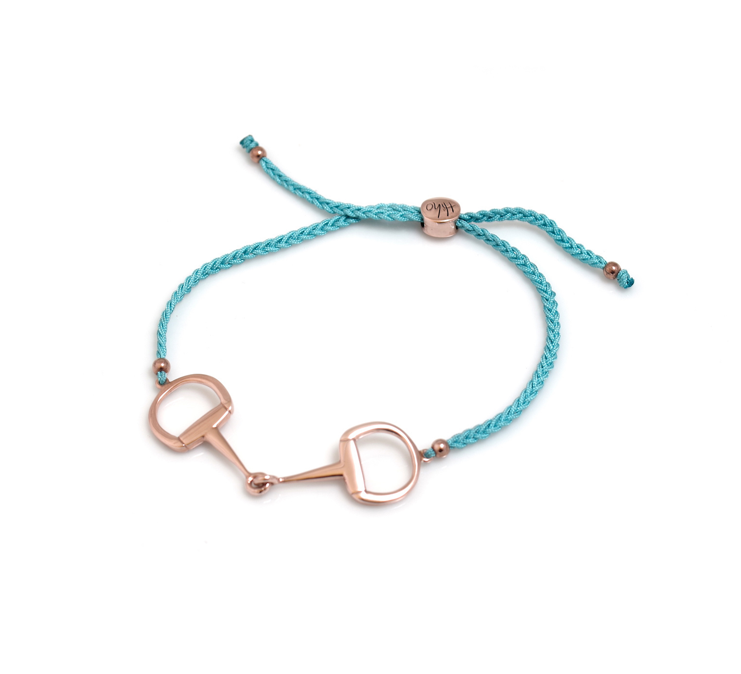The Exclusive Sterling Silver And 18ct Rose Gold Plate Hammered Heart Friendship Bracelet has a 1.5cm heart and is available on turquoise or navy blue cord. It has a RRP of £40. The Exclusive Sterling Silver And 18ct Rose Gold Plated Snaffle Friendship Bracelet is available with turquoise, chocolate brown or navy blue cord and has a RRP of £45.