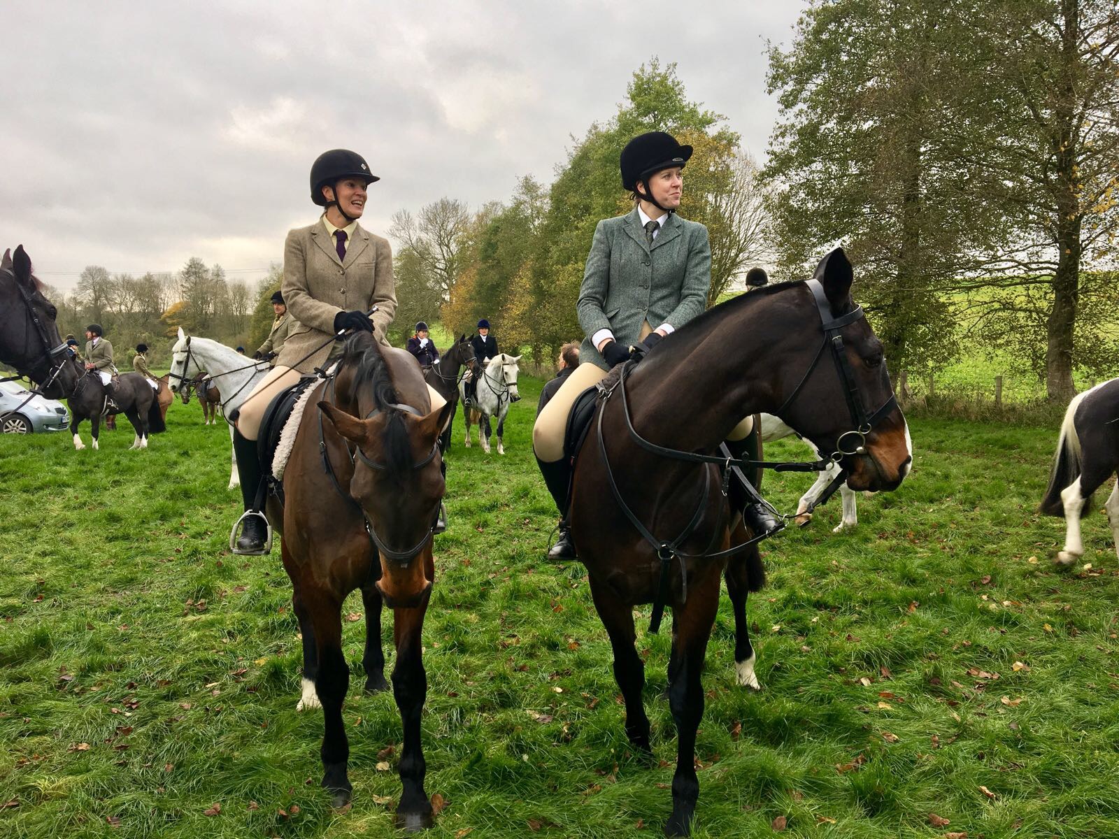 It was a lovely day, but my wretched nerves kept bubbling up to spoil things. This usually manifests itself in initially panicking about getting my stirrups the right length, which meant that instead of chatting to my dad who’d cycled along to the meet and generally taking in the loveliness of essentially getting to ride in my parents’ backyard, I was thinking dark thoughts about my stirrups being too long, too short, made of small Siberian hammers etc etc. Eventually, it got to the point where I was imagining falling off and landing on my hipflask and breaking my entire body to smithereens, so I gave my dad ownership of my hipflask and went off alone.