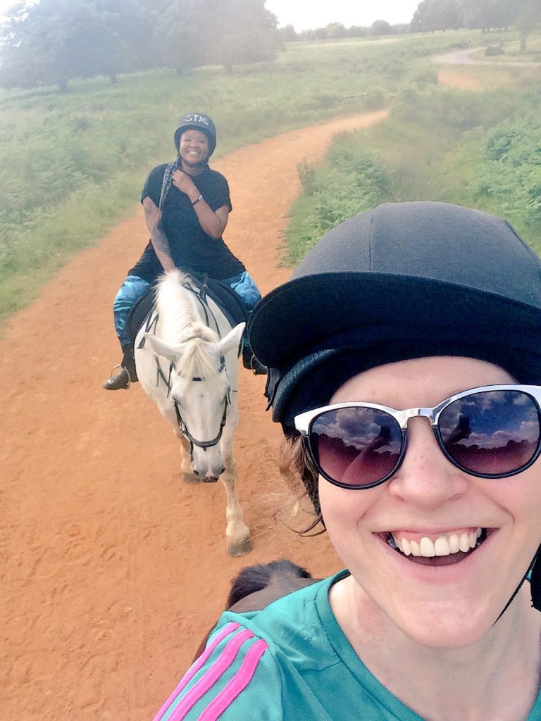 In heat like this, the mere idea of idea of schooling tends to make you feel a bit out of sorts – I forgot my contact lenses while jumping the other week, so spent most of the hour pushing increasingly slippery glasses up my nose or swinging round corners completely blind like a colossal twit – so it was with great joy that I got the train to Putney to head off for a leisurely hack around Richmond Park instead with my pal Ebona.