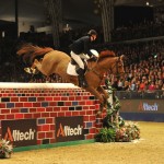 Dutch rider Jur Vreiling, a European team gold medallist this year, set the evening alight when triumphing in the Christmas Speed Stakes on Arezzo VDL ahead of France’s Simon Delestre (Stardust Quinhon) and Beh Maher (Boomerang). He took it in good part when taking a tumble in prize-giving and was laughing as he left the arena.