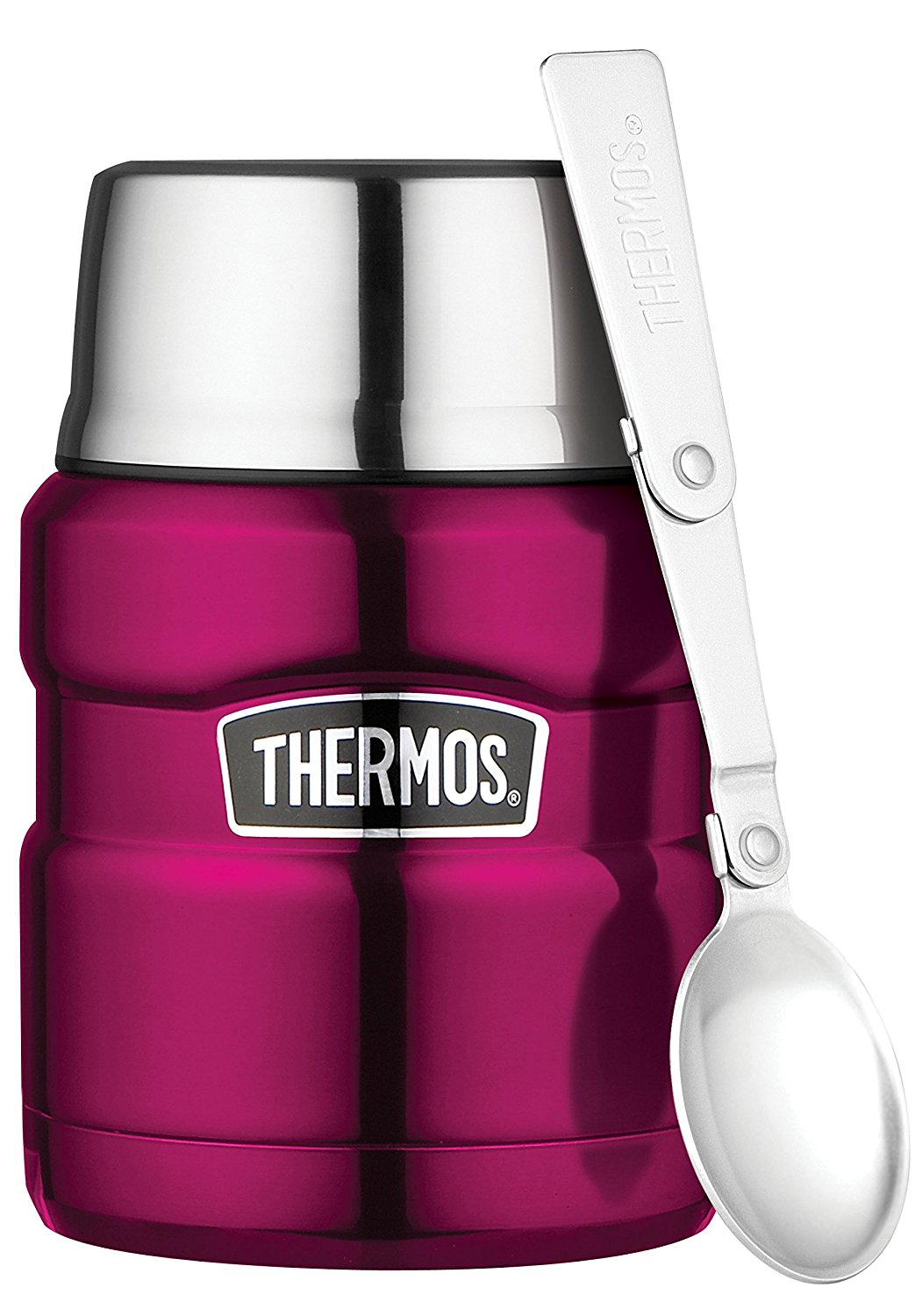 Durable stainless steel interior and exterior with insulated stainless steel lid that doubles as a serving bowl, making it perfect for on the go. Keeps food and drink hot for 9 hours and cold for 14 hours.