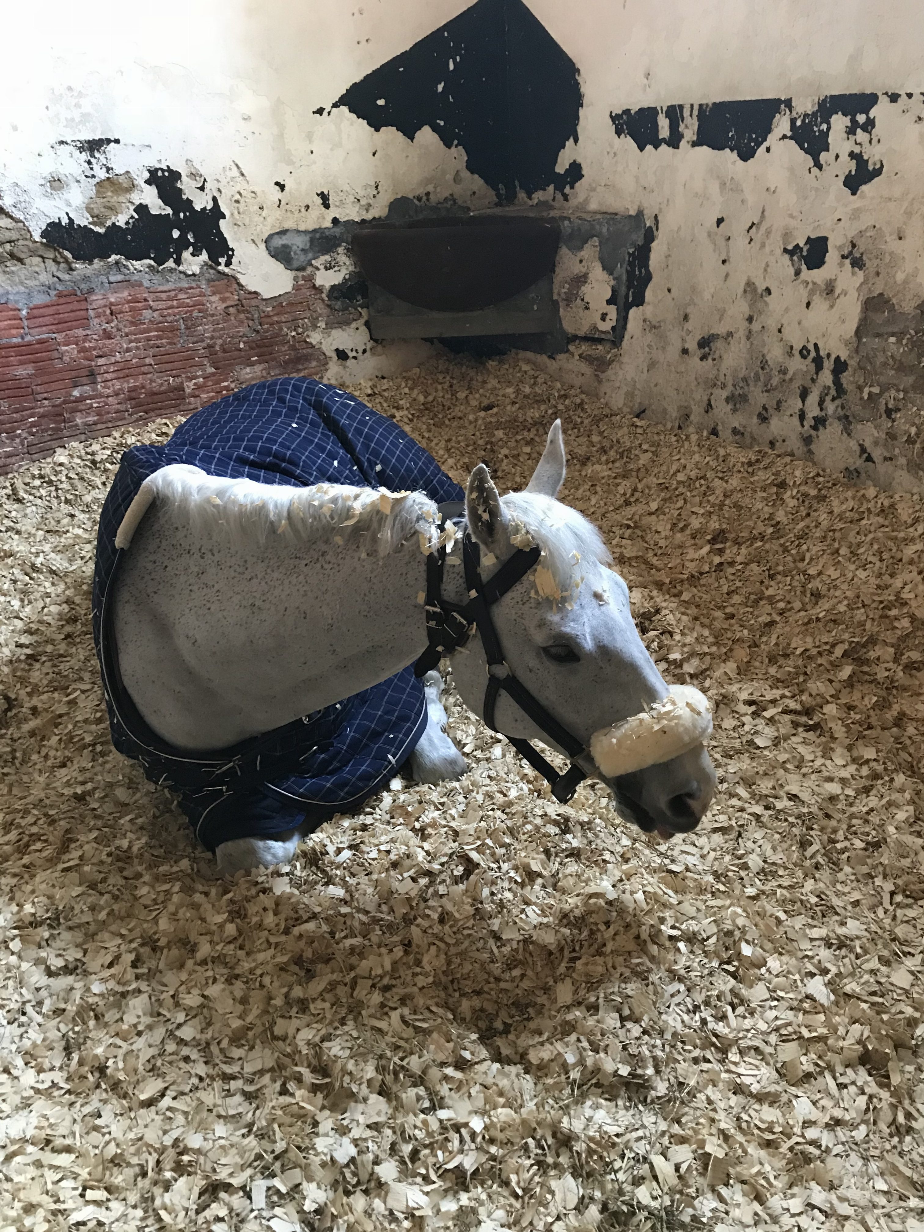 Spot settled in well and not long of being there he was already asleep lying down! He is a laid back character in the stable but as probably a lot of people saw once he is out of the stables he wasn’t quite so laid back! He was very fresh at the trot up and they both certainly stole the lime light and flew through. Though I’m hoping some people noticed Spot not just Harry’s lime green trousers!