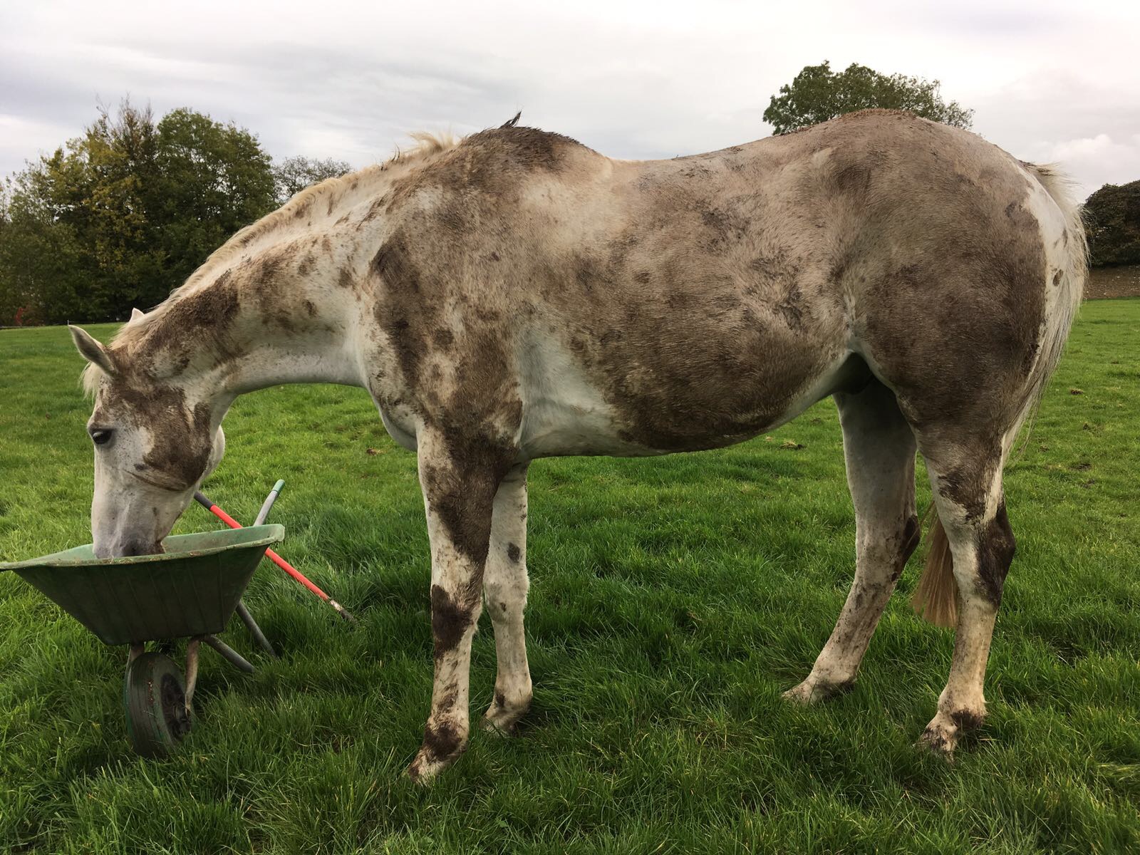 Spot having put on 100kg whilst out on his winter hols after Burghley last year! Luckily there is a photo below where he looks a little different!