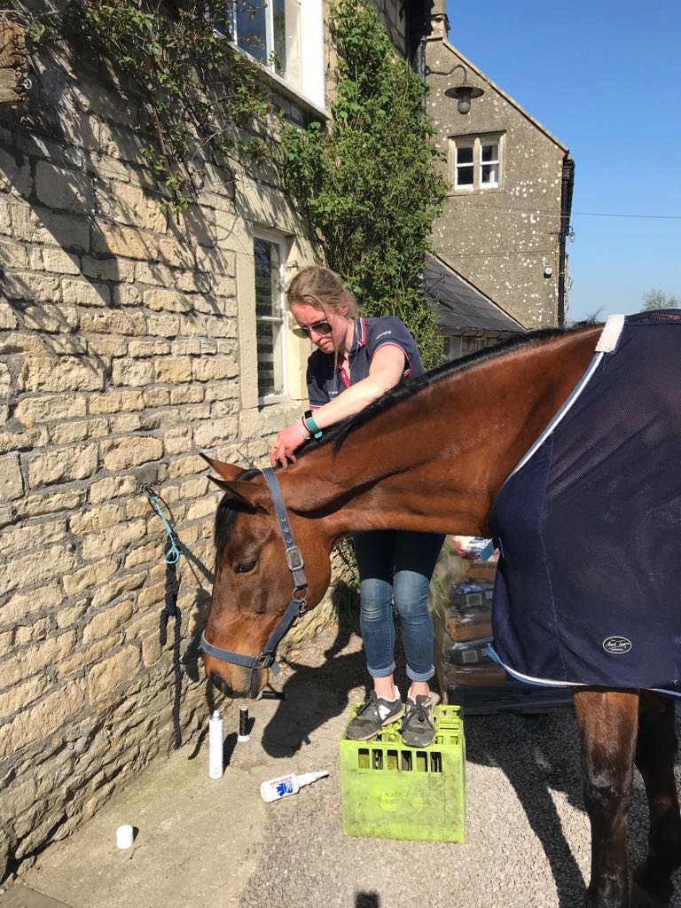 We have had horses out training most days and Away Cruising (Spot) preparing hard for Badminton which seems to be approaching very fast! With the weather beginning to pick up I had forgotten what sunshine looked like, so when we took 4 horses to Bicton in Devon it was an odd feeling applying suncream and seeing everyone dressed for summer!