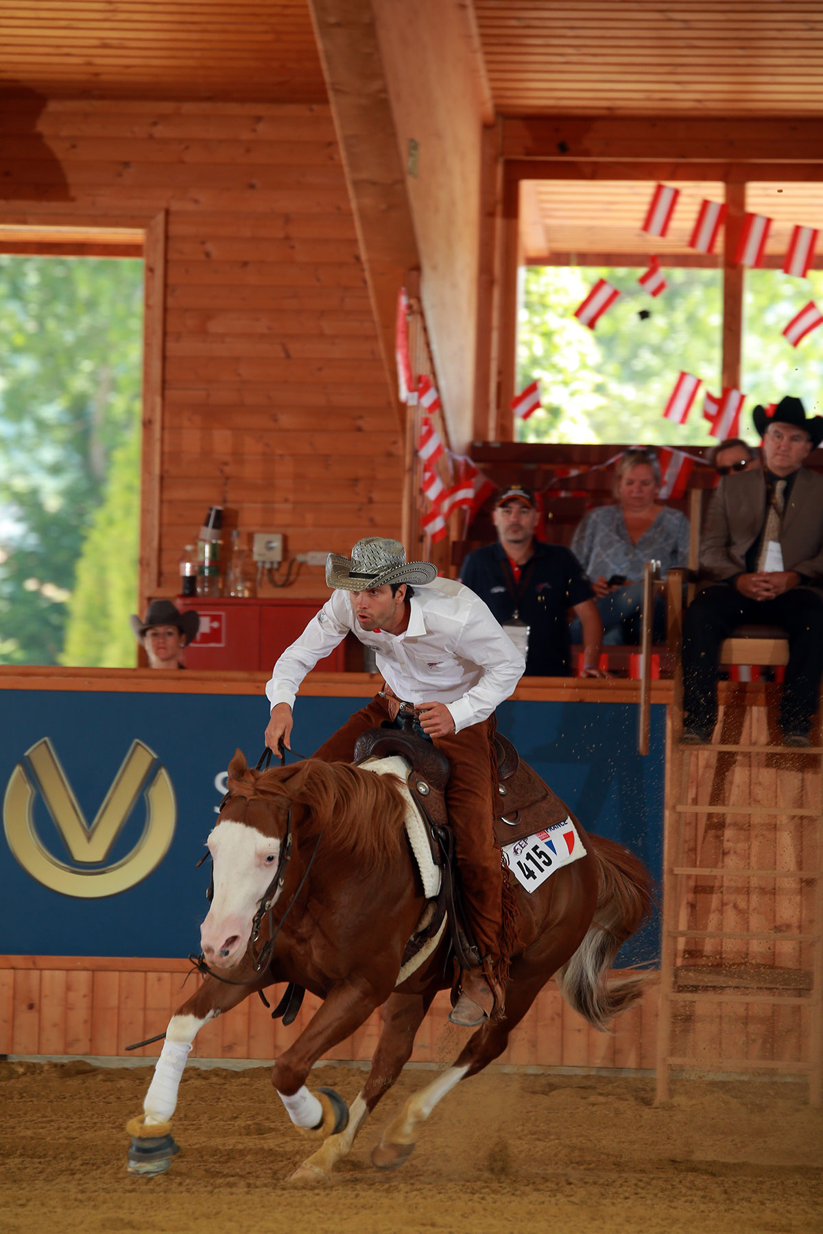 Qualifying along with Bourgeois and Brown were Tina Kuenstner-Mantl (AUT) and Nu Chexomatic owned by Jacpoint Quarter Horses, Morey Fisk (CAN) aboard Chics Smokingun owned by Sabine Schmid and Paolo Fabbri (ITA) riding Lenas Drawin His Gun owned by Lenas Syndacate.