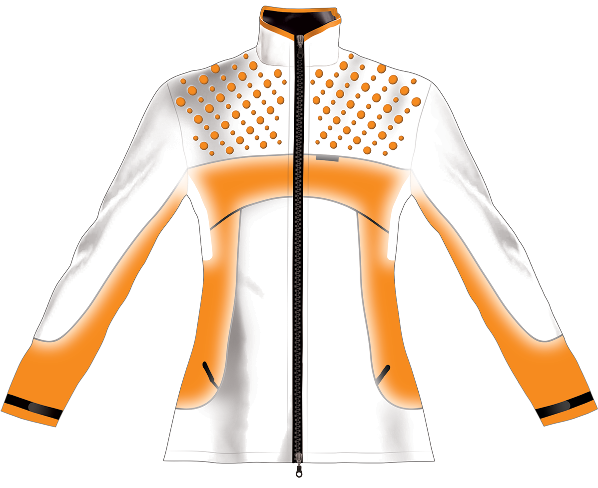 Stunningly ergonomic design created in lightweight, breathable, waterproof fabric giving an elegant silhouette. 2-way front zip, 2 hidden side pockets and two open back vents.
