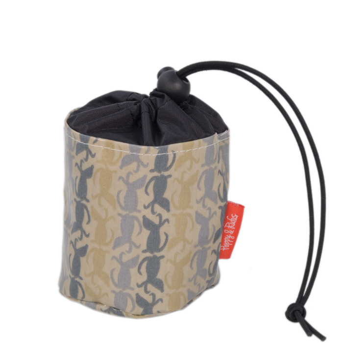 Keeps human’s pockets clean and the waterproof lining can be pulled inside out to clean. Beano is made from their own unique ‘Little Rufus’ print oilcloth on the exterior, and a strong elastic drawstring opening makes it slightly more challenging for me to steal treats if left within my reach but apart from that I love it!