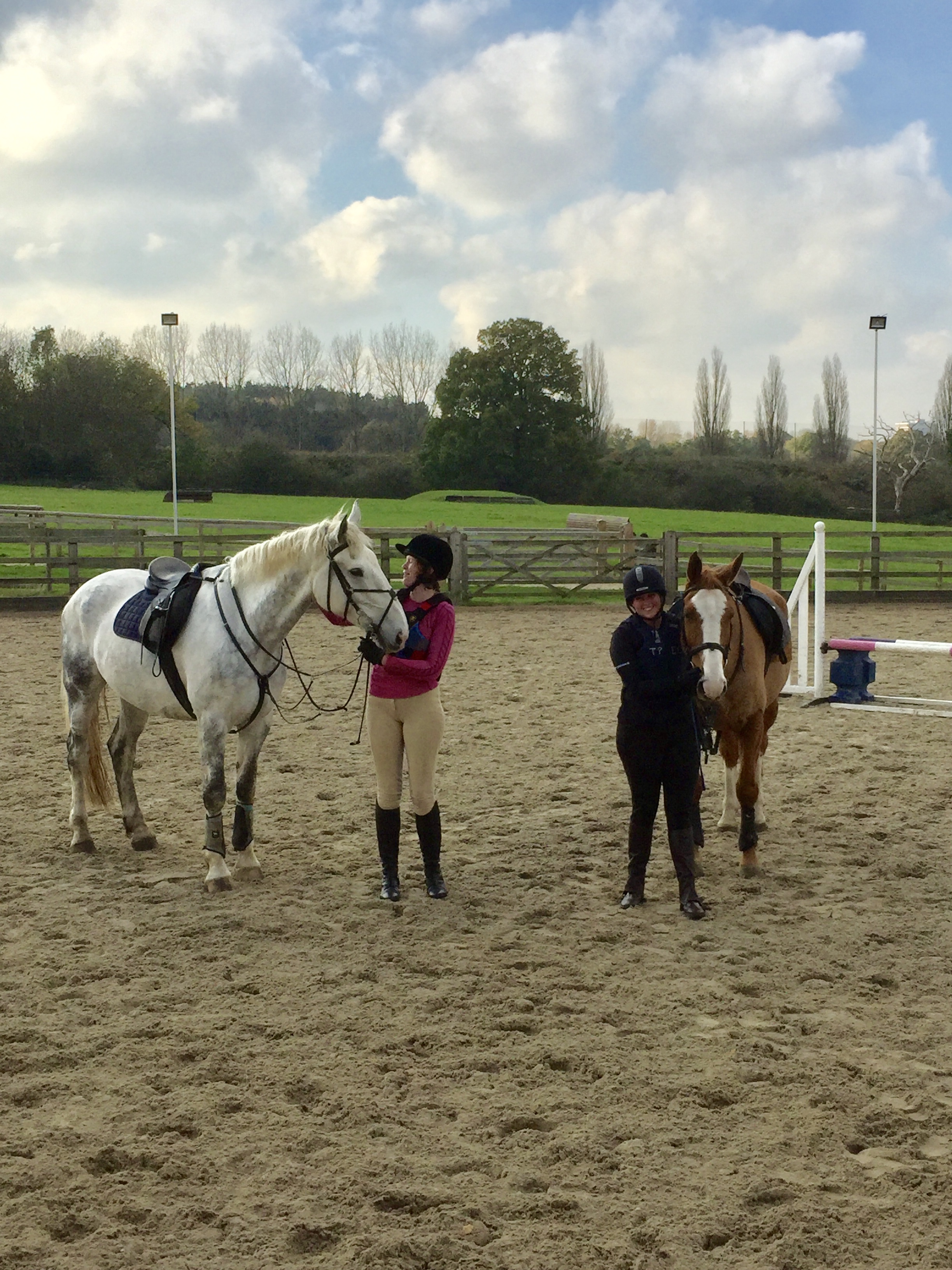 Back in London, I’ve been carrying on my evening jumping lessons with The Solicitor, and recently celebrated the joyous return of my friend The Trainee, who had been off games all summer while she worked her ass off in her new job. We celebrated with, you guessed it, a jumping lesson (I swear we do flatwork too…sometimes!) and our eyebrows went through the roof on being assigned two extremely smart horses instead of our usual beloved cobs.