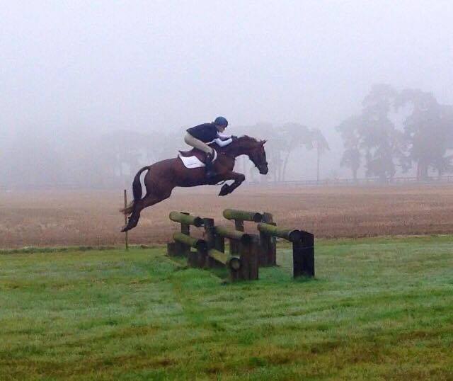 Last season was Fision M’s first season eventing and he was so brave and scopey he quickly stepped up to novice. After a few steady runs at novice I decided at Dauntsey we were in a position to be competitive after a 27 dressage and clear SJ and that I’d move him up a gear XC…..it was all going very well and I was galloping towards the third last fence, a simple viaduct wall, thinking I was going to easily make the time and win – except I rode a terrible turn and at the last minute he spooked at the gap under the wall, dived sideways, half took-off and ended up straddling the wall. All I could think was that if we went forward then I’d be able to just carry on. Evidently I wasn’t thinking very clearly because he was quite stuck and in getting himself over, I was rather ungraciously ejected over his shoulder in slow motion. Luckily neither of us were any worse for wear and we both learnt something from it!