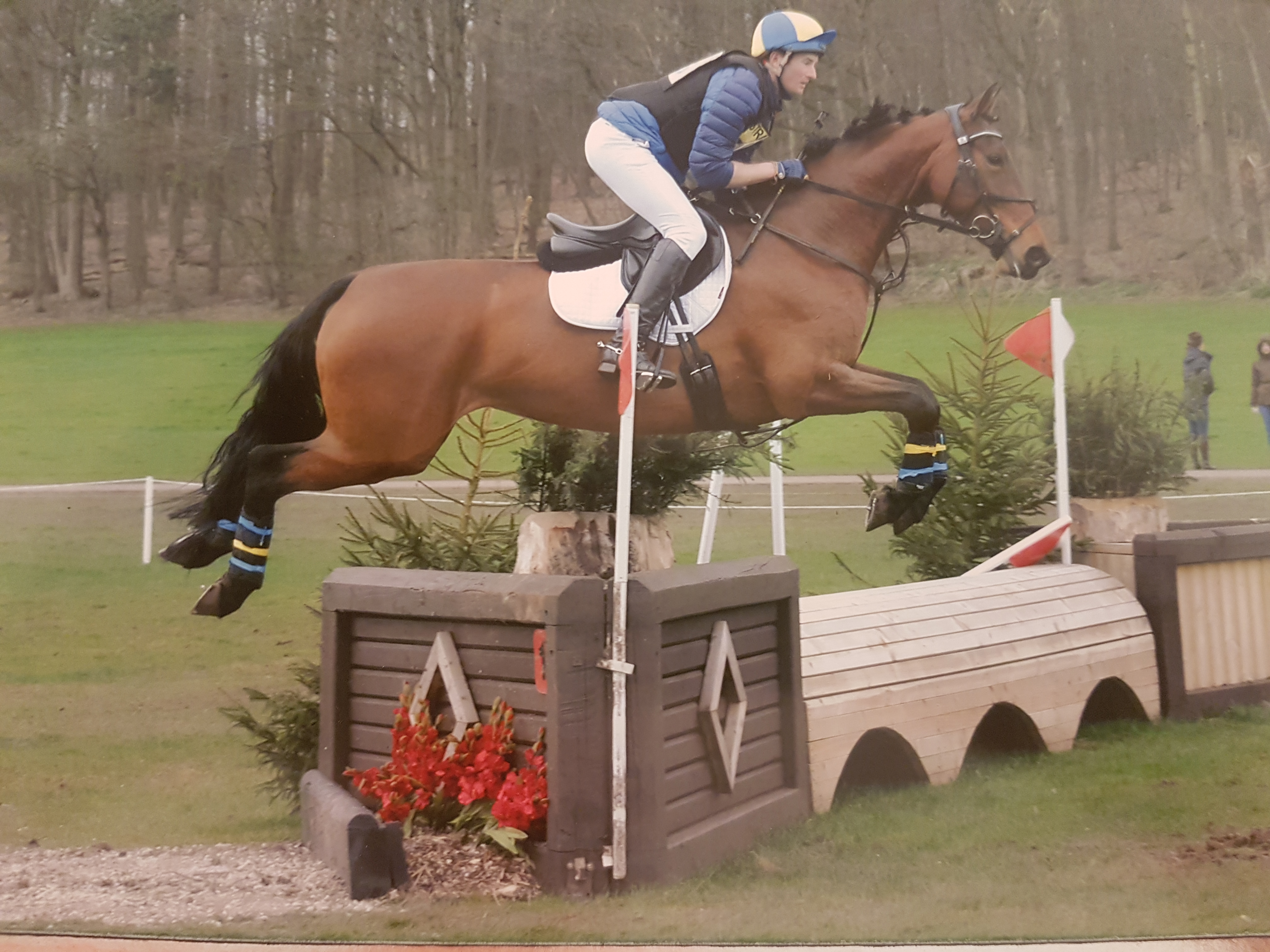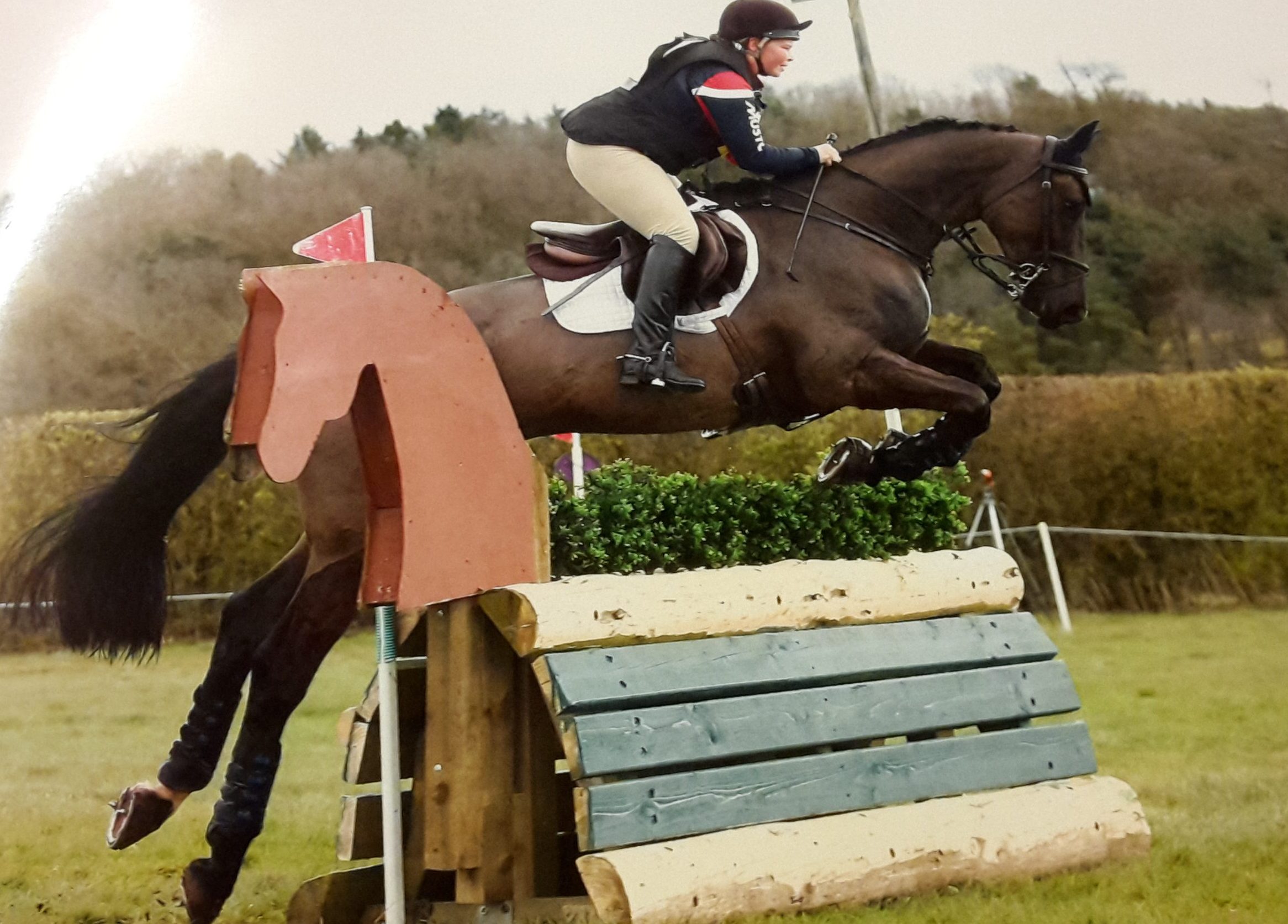 Aged 17 I was set to win a hat trick on one of our Welsh Part bred horse stallions – Lynwood Cane. I was leading the class at my third year doing the Riding Clubs two day event at Offchurch Bury, when I jumped a difficult ditch to hedge bounce on an angle so well I amazed myself and rode the wrong side of a tree after landing, which put me at an impossible angle to jump the next fence. I ended up falling off and giving myself mild concussion and Cane cantered back to lorry park jumping the Coffin on his own in a rather excited manner with his crown jewels on show, neighing at the top of his lungs! I look back and laugh at it now but at the time I was so annoyed with myself!